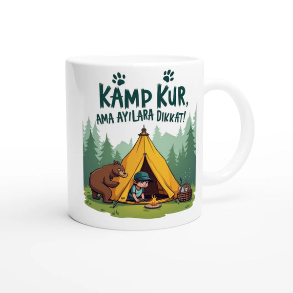 Turkish Funny Camping Mug – ‘Kamp Kur, Ama Ayılara Dikkat!’ Humorous Adventure Design