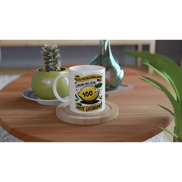 Turkish Funny Marketing Specialist Printed Mug – Lemon Selling Humor Design