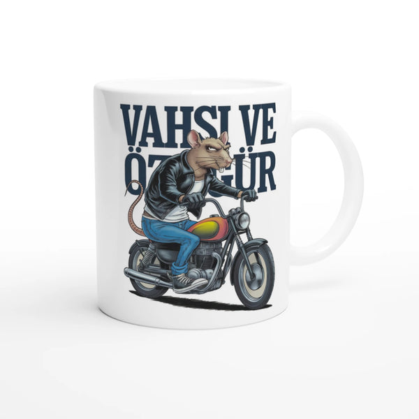 Fuel your passion for motorcycling with every sip from this bold “Vahşi ve Özgür” (Wild and Free) mug. Featuring a tough biker rat riding in style, this mug is perfect for motorcycle lovers who embrace freedom and adventure.