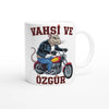 This “Vahşi ve Özgür” (Wild and Free) ceramic mug brings the fearless attitude of motorcycling right to your coffee table. Designed for riders and dreamers, the bold biker rat artwork adds a unique and edgy touch to your drinkware collection.