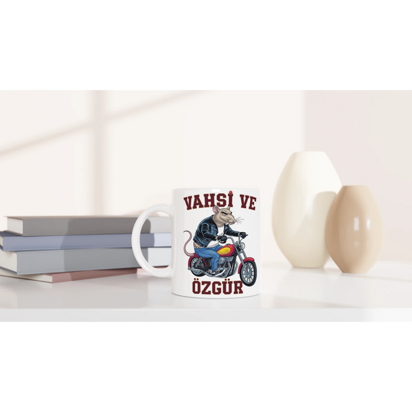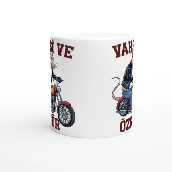Vahşi ve Özgür Motorcycle Mug – Bold Biker Rat Design for Motorcycling Enthusiasts