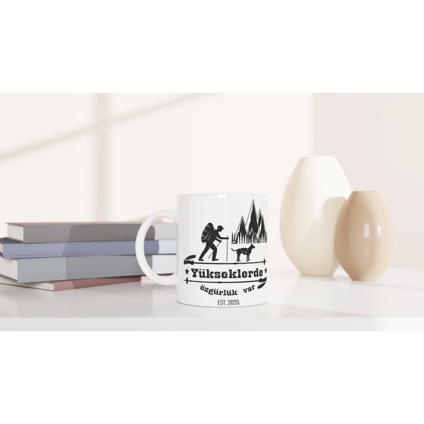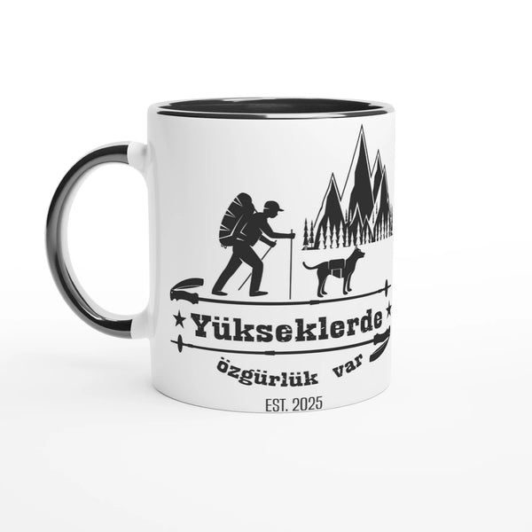 Turkish Yükseklerde özgürlük var Hiking Mug – Adventure Awaits in the Mountains baskılı bardak