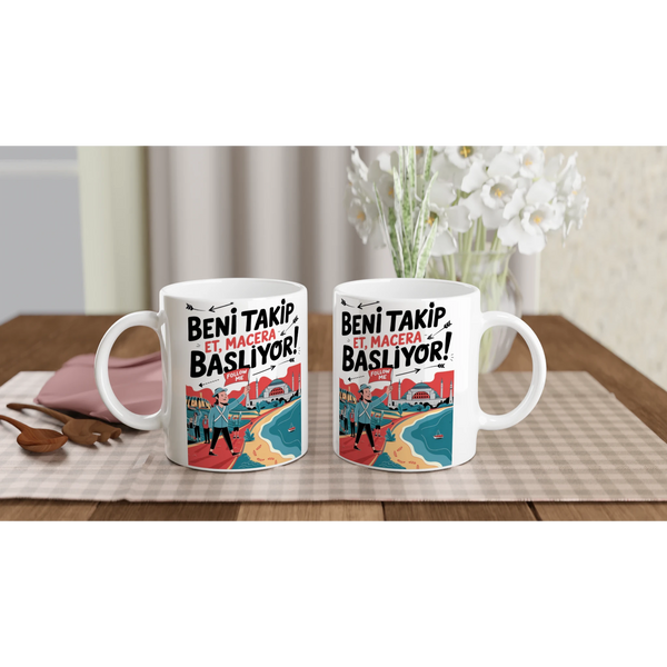 Turkish Follow Me Mug – ‘Beni Takip Et, Macera Başlıyor’ Design for Travel Enthusiasts