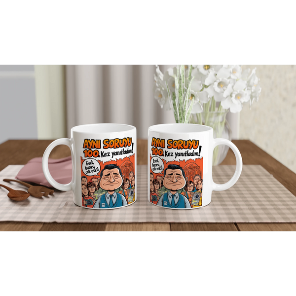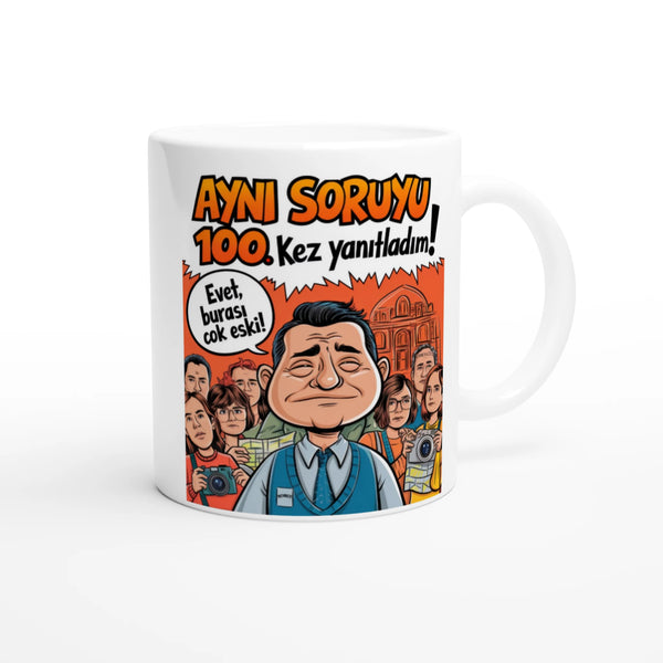 Turkish Funny Tour Guide Printed Mug – Aynı Soruyu 100 Kez Yanıtladım’ Design