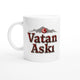 Zeigen Sie Ihren tiefen Respekt und Ihre Liebe für Ihr Heimatland mit der Vatan, Bayrak, Atatürk-Tasse . Diese wunderschön gestaltete Tasse zeigt eine elegante Schrift und die ikonische türkische Flagge, eine herzliche Hommage an die Werte, die uns vereinen. 🇹🇷